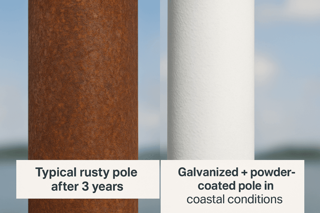 Galvanized pole corrosion test results prove that hot-dip zinc coatings provide unmatched long-term protection against rust, outperforming painted or powder-coated alternatives in all major corrosion