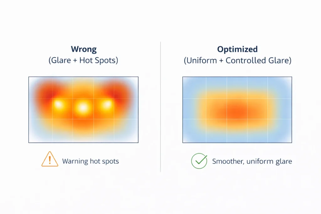 Mistake 2 — “Average lux is ok” but uniformity fails