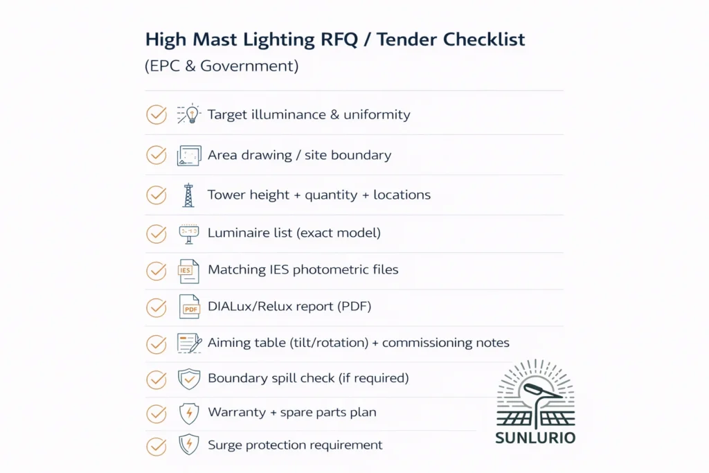 High mast lighting RFQ tender checklist for EPC and government projects
